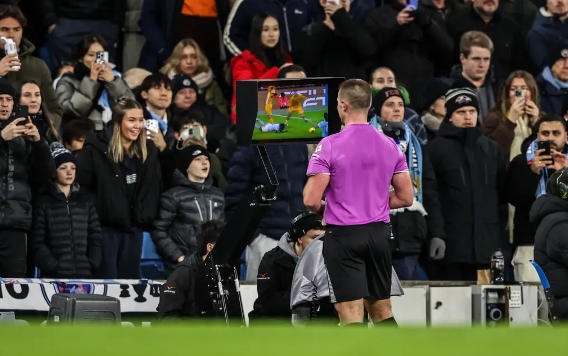 比賽的轉(zhuǎn)折點(diǎn)出現(xiàn)在第41分鐘,多庫在左路禁區(qū)內(nèi)突入內(nèi)切的時候,被迭戈 - 戈麥斯絆倒。主裁判在VAR的介入下,果斷判罰點(diǎn)球。哈蘭德站在點(diǎn)球點(diǎn)前,眼神堅定,他助跑、射門,一蹴而就,曼城終于打破了場上的僵局,1 - 0領(lǐng)先。這個進(jìn)球讓曼城的球迷們歡呼雀躍,他們仿佛看到了勝利的曙光。